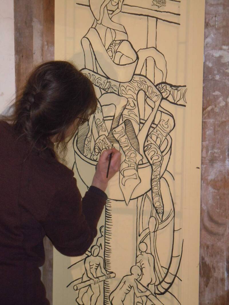 Le dessin est inspiré du style du moyen-âge, avec une perspective aléatoire et un changement d’échelle qui évoquent le rêve, l’imagination.